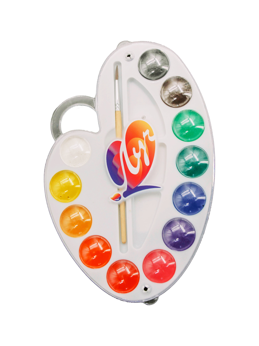 Краски акварельные 12 цветов «Луч» в палитре с кистью