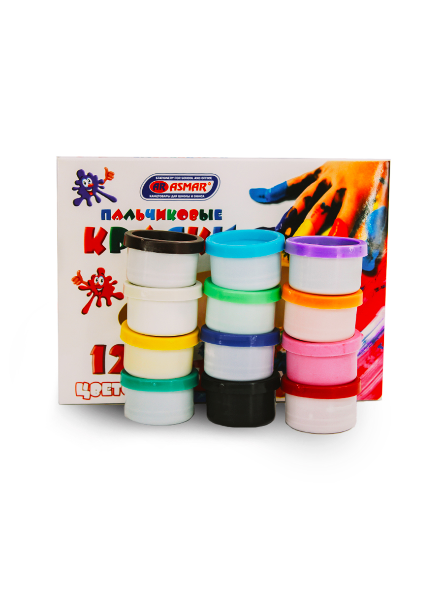 Пальчиковые краски «AR Asmar» 12 цветов — яркий и насыщенный набор для детского творчества, идеально подходящий для рисования руками.