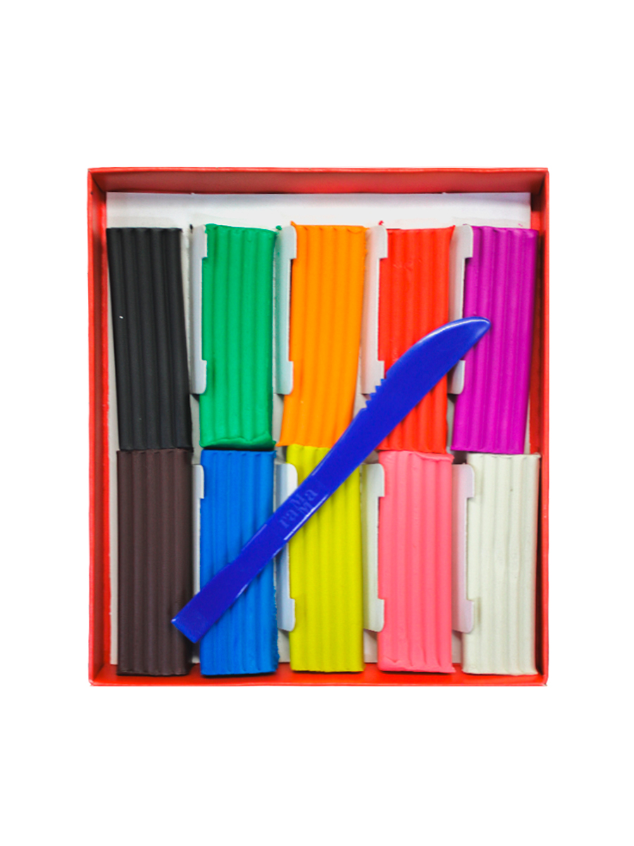 В наборе 10 ярких цветов, которые легко смешиваются между собой, позволяя создавать разнообразные оттенки. Пластилин мягкий, пластичный, хорошо держит форму и не крошится при работе.