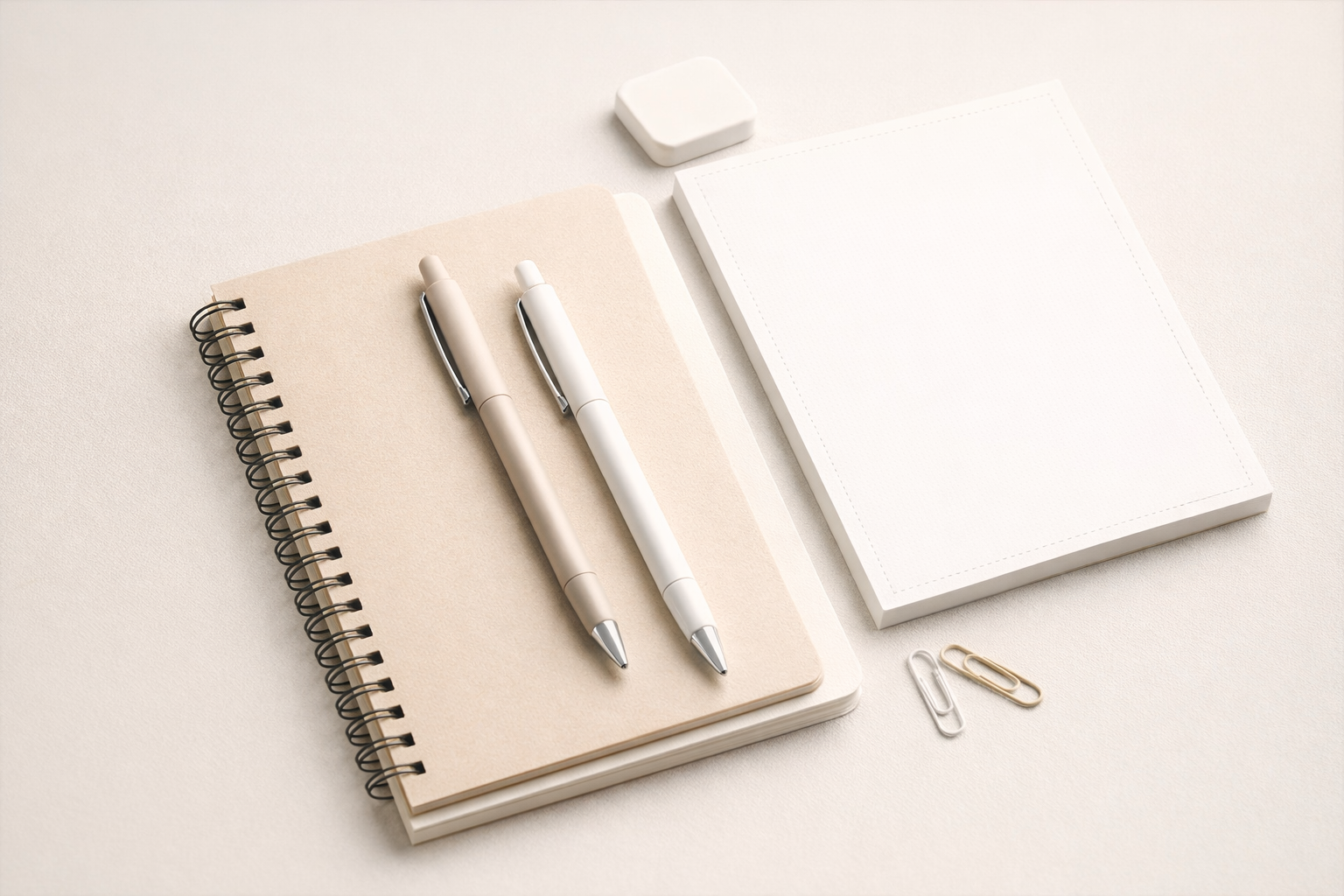 Ручки, тетради и мелочи для учёбы и работы: функционально, спокойно, без визуального шума.