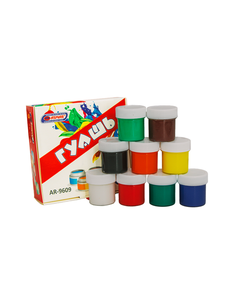 Набор гуашевых красок AR Asmar из 9 цветов — отличный вариант для более разнообразного творчества. Расширенная палитра позволяет создавать яркие рисунки и экспериментировать с оттенками.