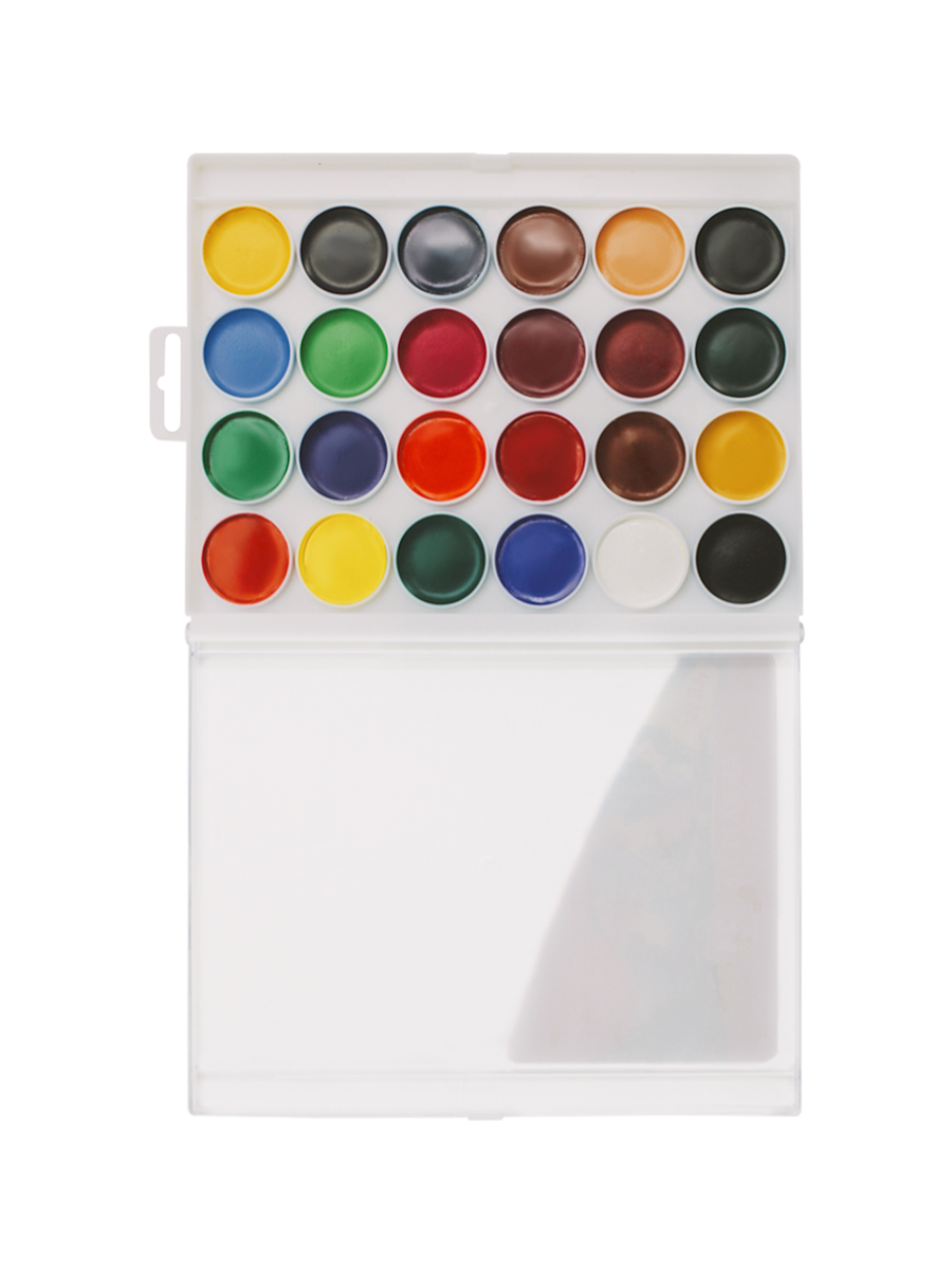 Краски изготовлены на медовой основе, благодаря чему легко разводятся водой и дают яркие, насыщенные и прозрачные оттенки. Палитра из 24 цветов позволяет создавать более сложные рисунки, мягкие переходы и разнообразные цветовые сочетания.